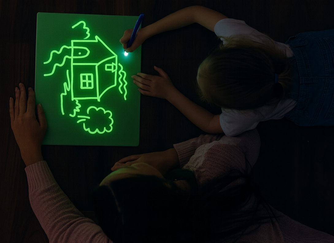 Una pizarra luminosa que transforma cada trazo en un dibujo brillante, perfecta para estimular la imaginación, la coordinación y la concentración de los niños mientras se divierten sin ensuciar.